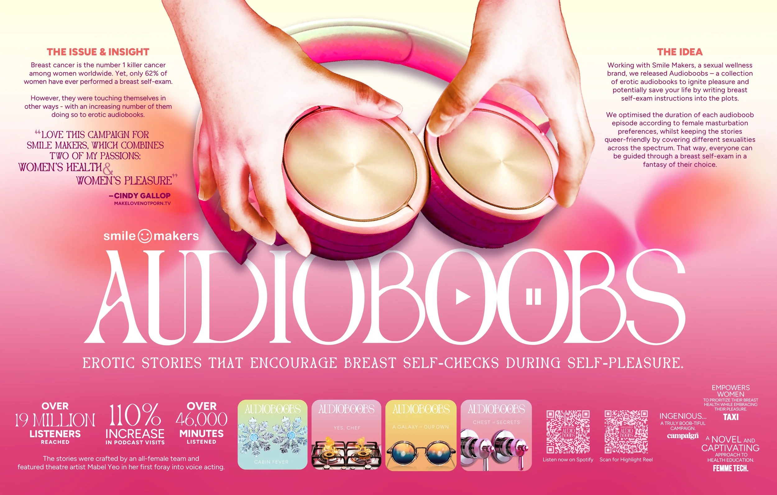 So, we worked with sexual wellness brand, Smile Makers, to produce a series of erotic audiobooks that encourage women to conduct these self-checks during self-pleasure.