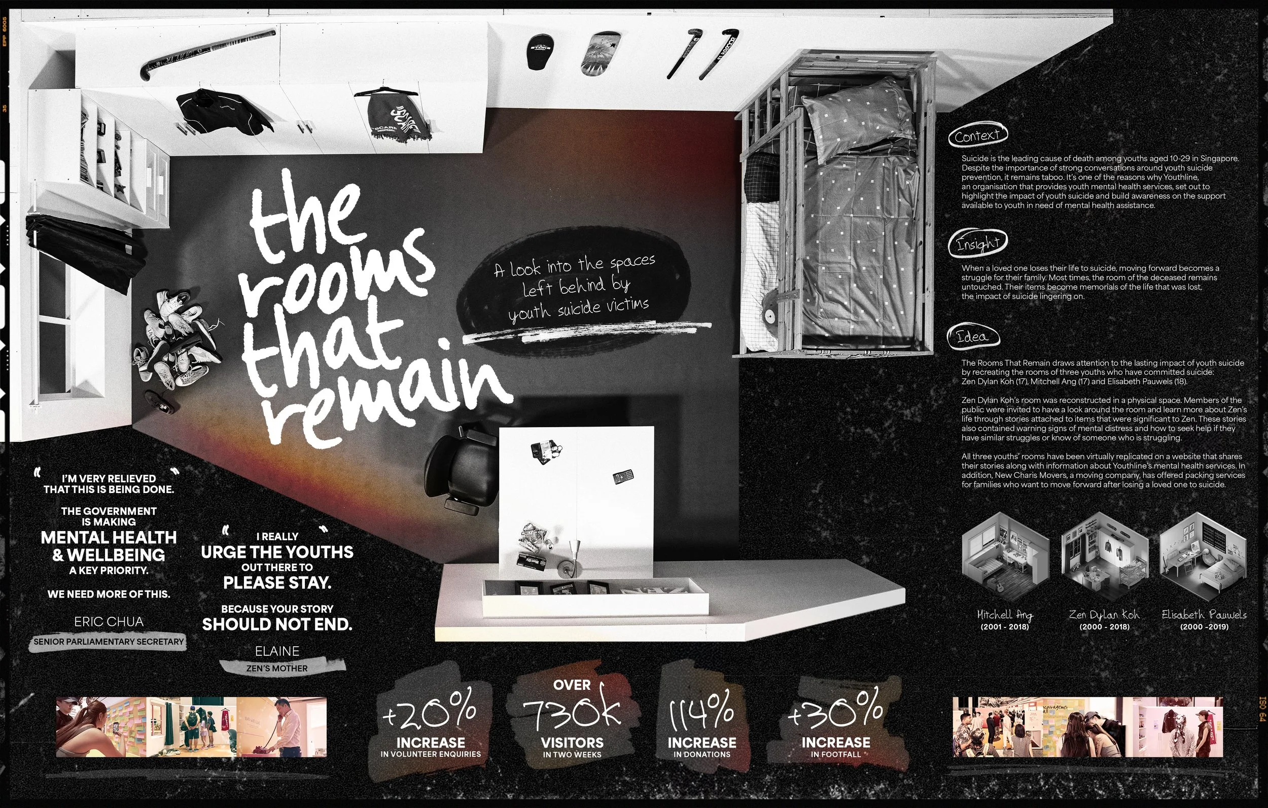 Buoyed by this heartbreaking insight, we collaborated with Youthline, an integrated mental health service, and PleaseStay. Movement to recreate three bedrooms of youths who died by suicide, demonstrating the devastating impact it leaves behind.
